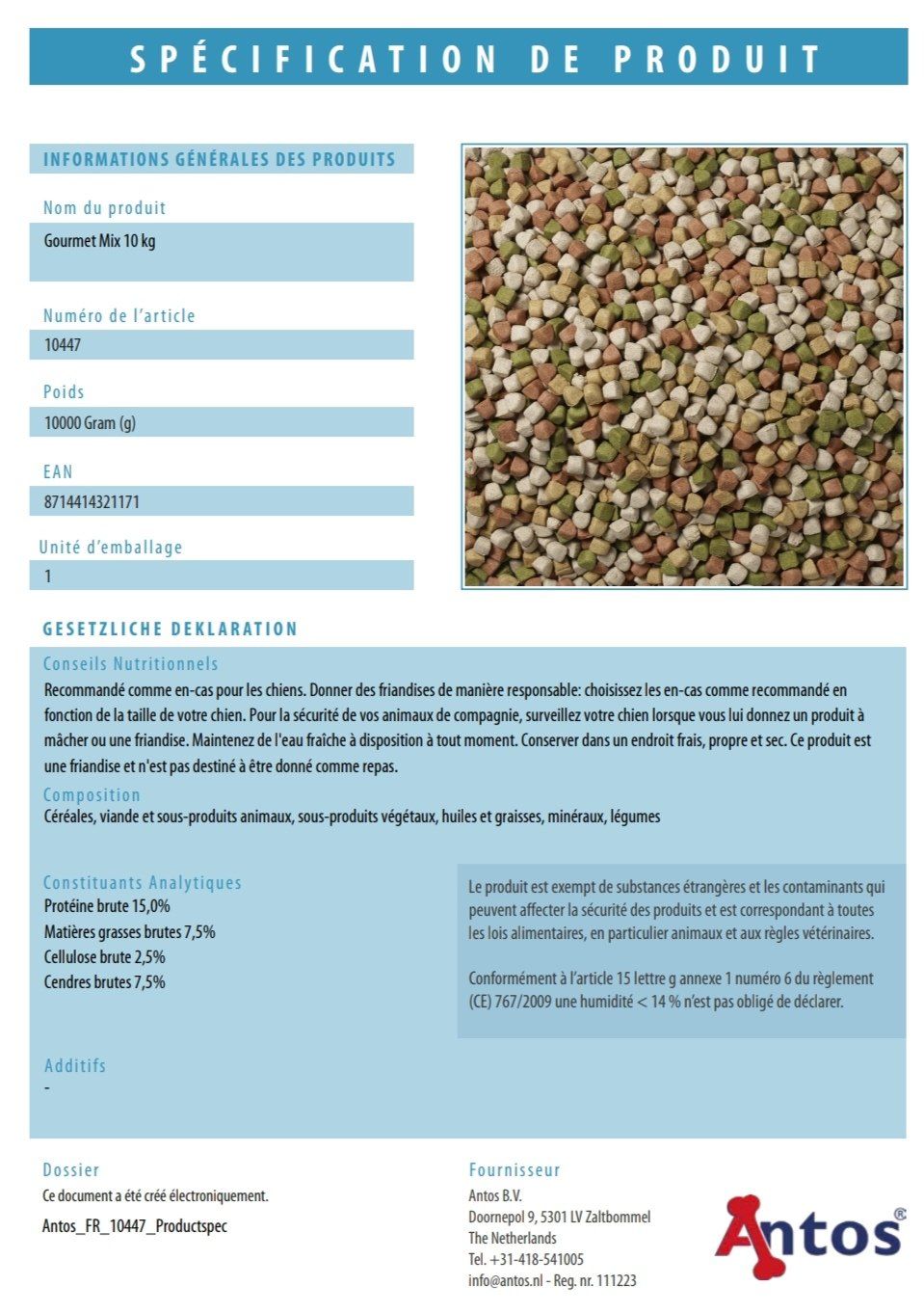 Ingrédients : Céréales, viande et sous-produits animaux, sous-produits végétaux, huiles et graisses, minéraux, légumes