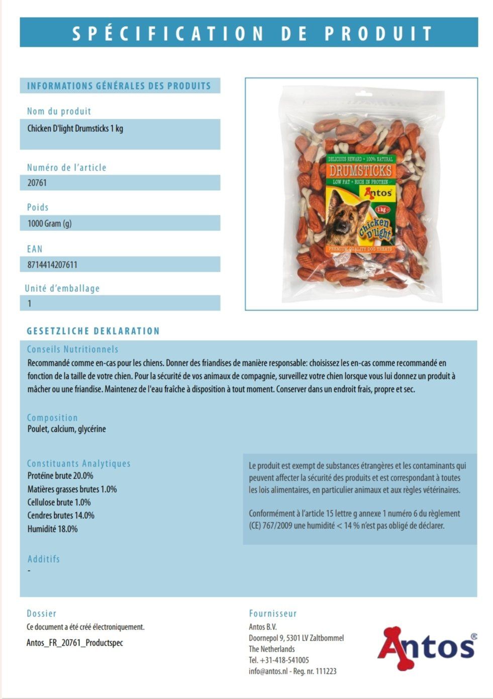 SPÉCIFICATION DU PRODUIT